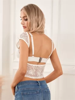2024 Summer Crop Tops Women Lace Blouse Slim Fit Backless Short Sleeve Shirts Beach Casual Retro Sexy Tops and Blouses