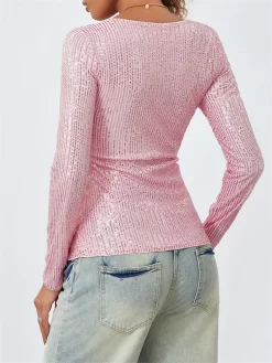 Women Long Sleeve Tops Sequins Basic Shirt Casual Pullover for Fall Club Streetwear Aesthetic Clothes