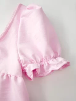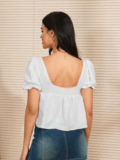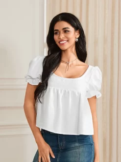 Women Short Sleeve Shirts Solid Color Puff Sleeve Square Neck Blouses Summer Fashion Casual Tops Streetwear