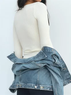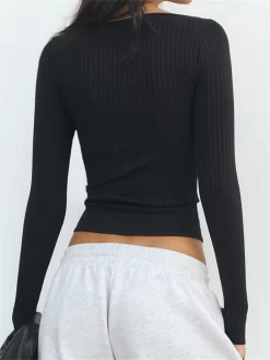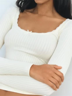 Women T-shirt Long Sleeve U Neck Bowknot Slim Fit Tops Ladies Spring Fall Casual Ribbed Shirts Streetwear